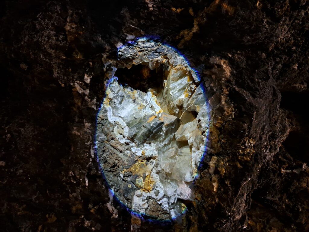 Se hace un recorrido por el interior de la Mina Rica y el final de ese recorrido está la Geoda. Por el interior de la mina se recorren un total de aproximadamente 1 km desde la entrada a la salida por la bocamina.
